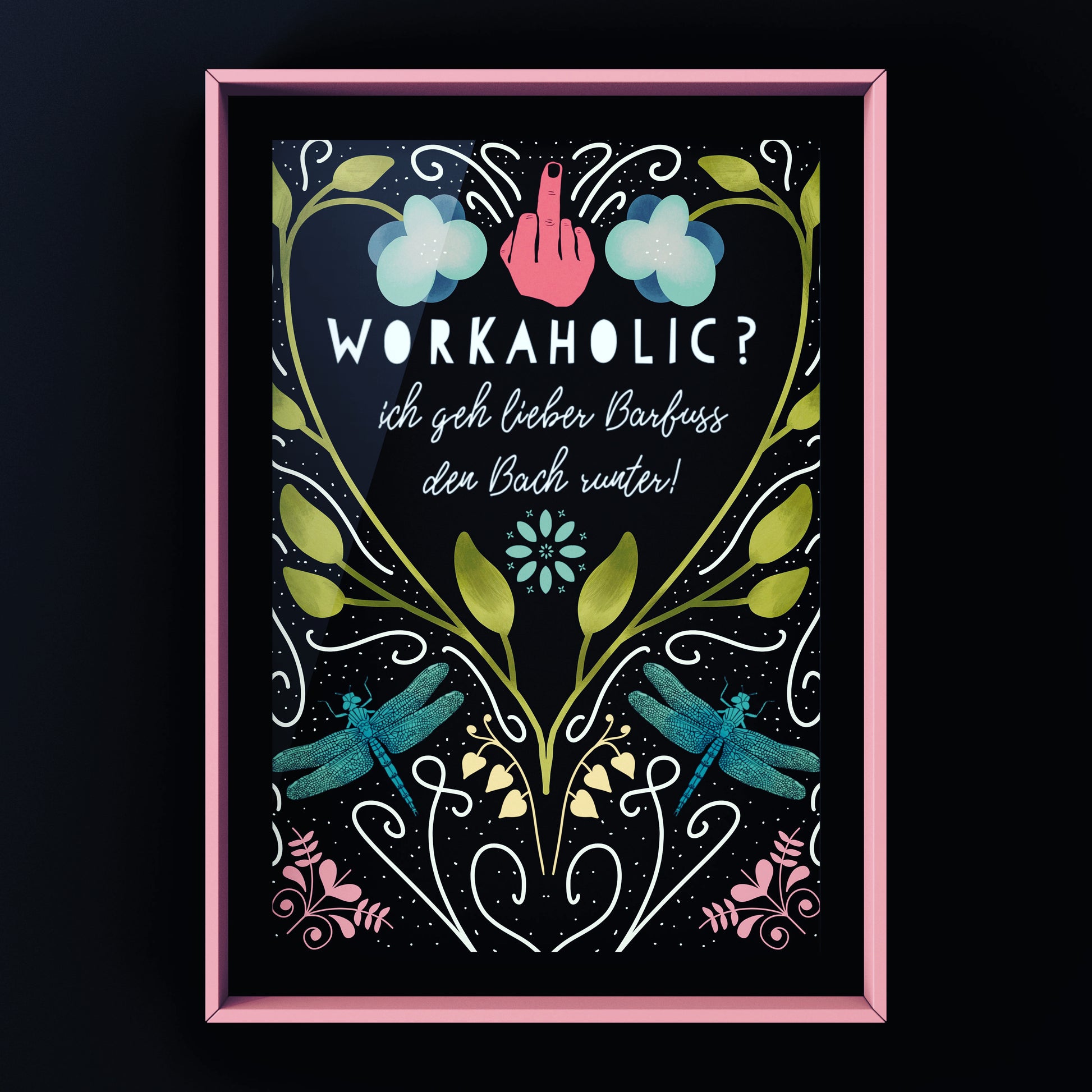 Art Print A4 – „Workaholic? Ich geh lieber barfuß den Bach runter!“
