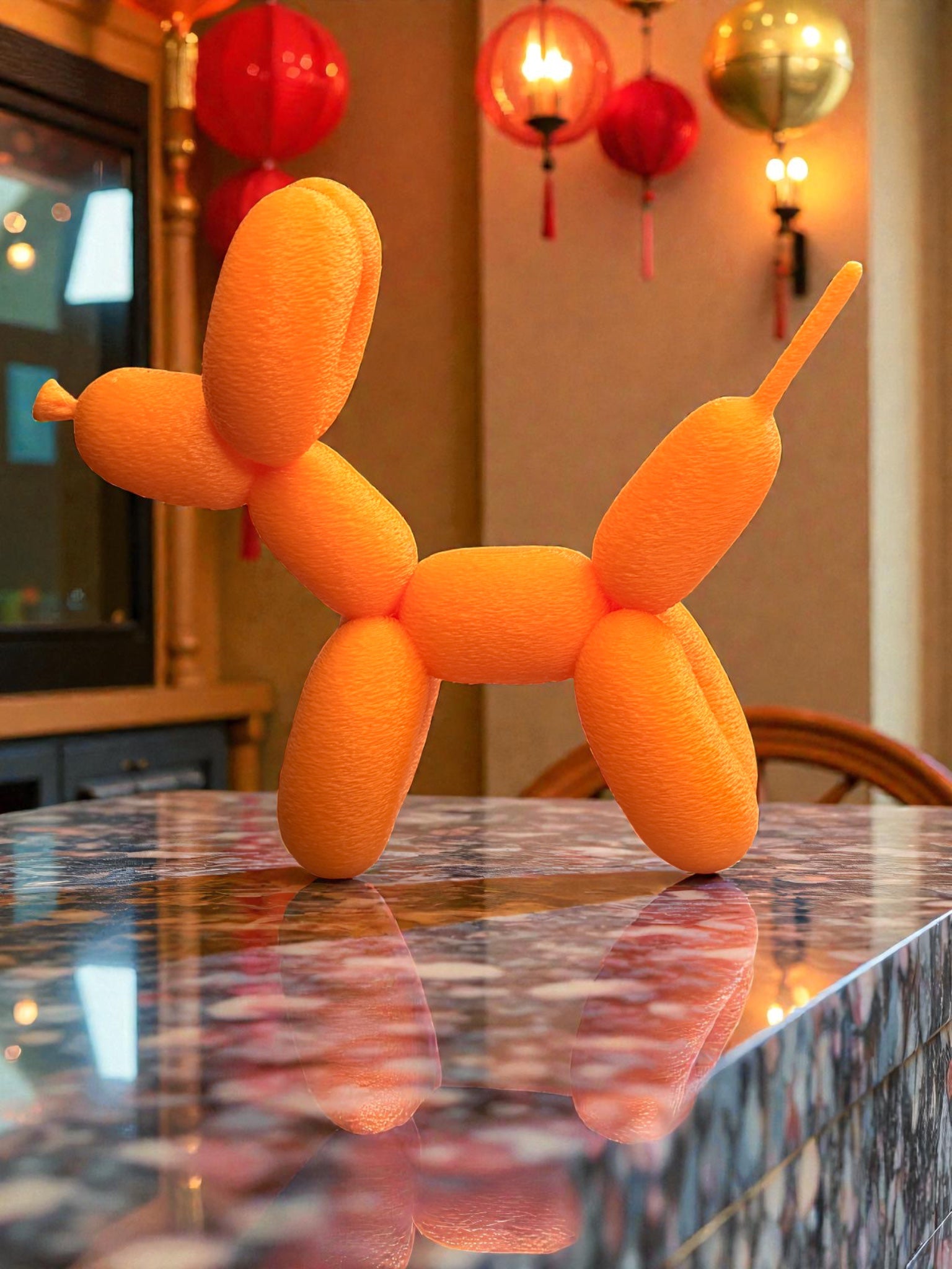 Dieser Ballonhund ist Deko mit Anspruch – glänzend, stylisch, ein bisschen artsy und absolut fotogen.