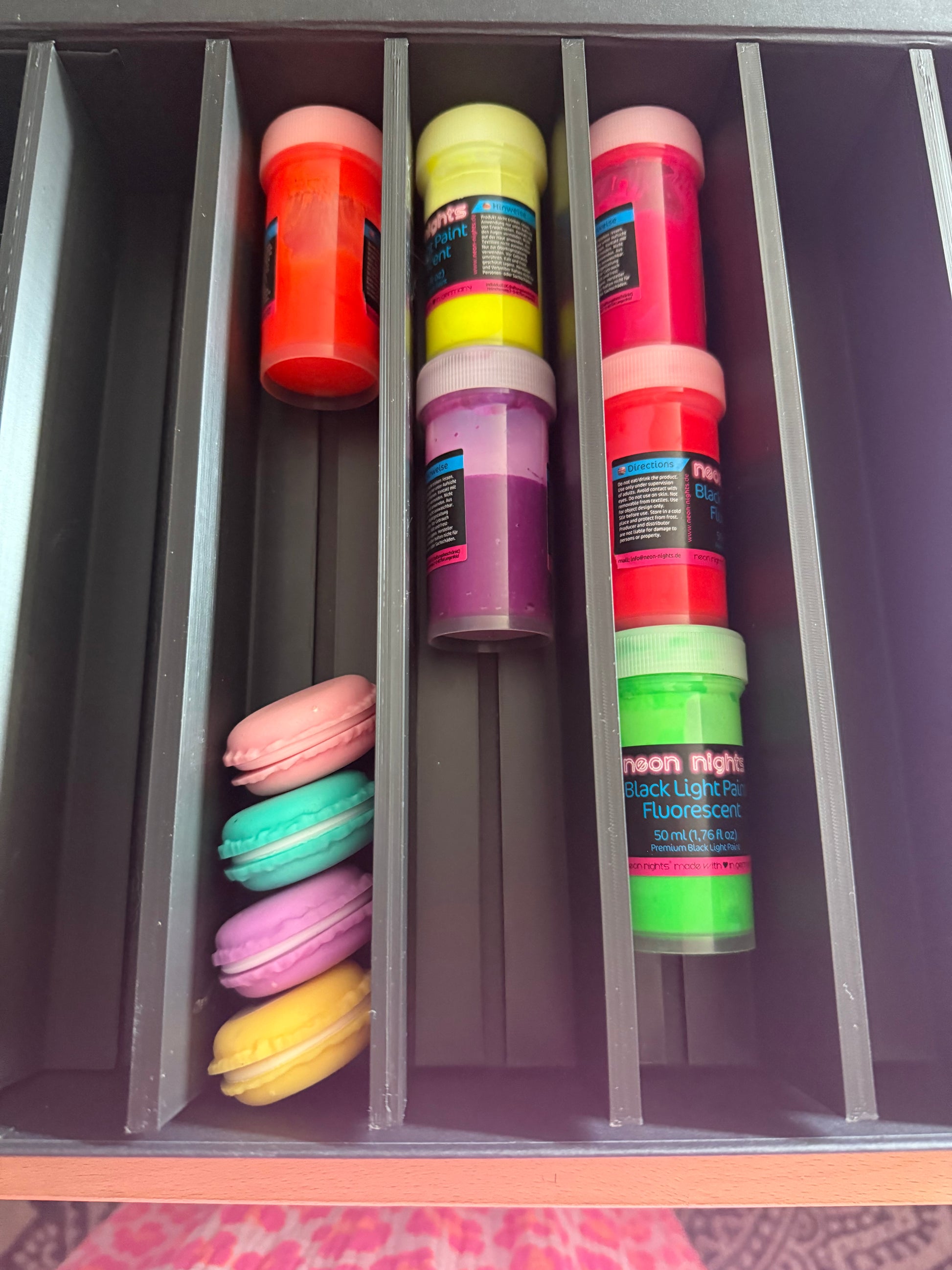 Edle Aufbewahrungsbox mit 3D-gedruckten Trennwänden, für deine Kreativen Utensilien.