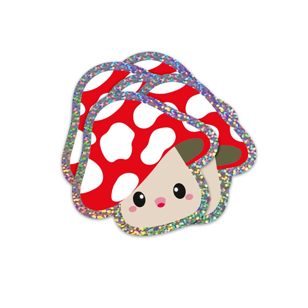 Glitzeraufkleber Roter Pilz mit weißen Punkten ist ein Glitzeraufkleber mit einem süßen kleinen Fliegenpilz. Der Aufkleber ist schön für Wasserflaschen, Laptop, Fahrrad, Telefon und vieles mehr.