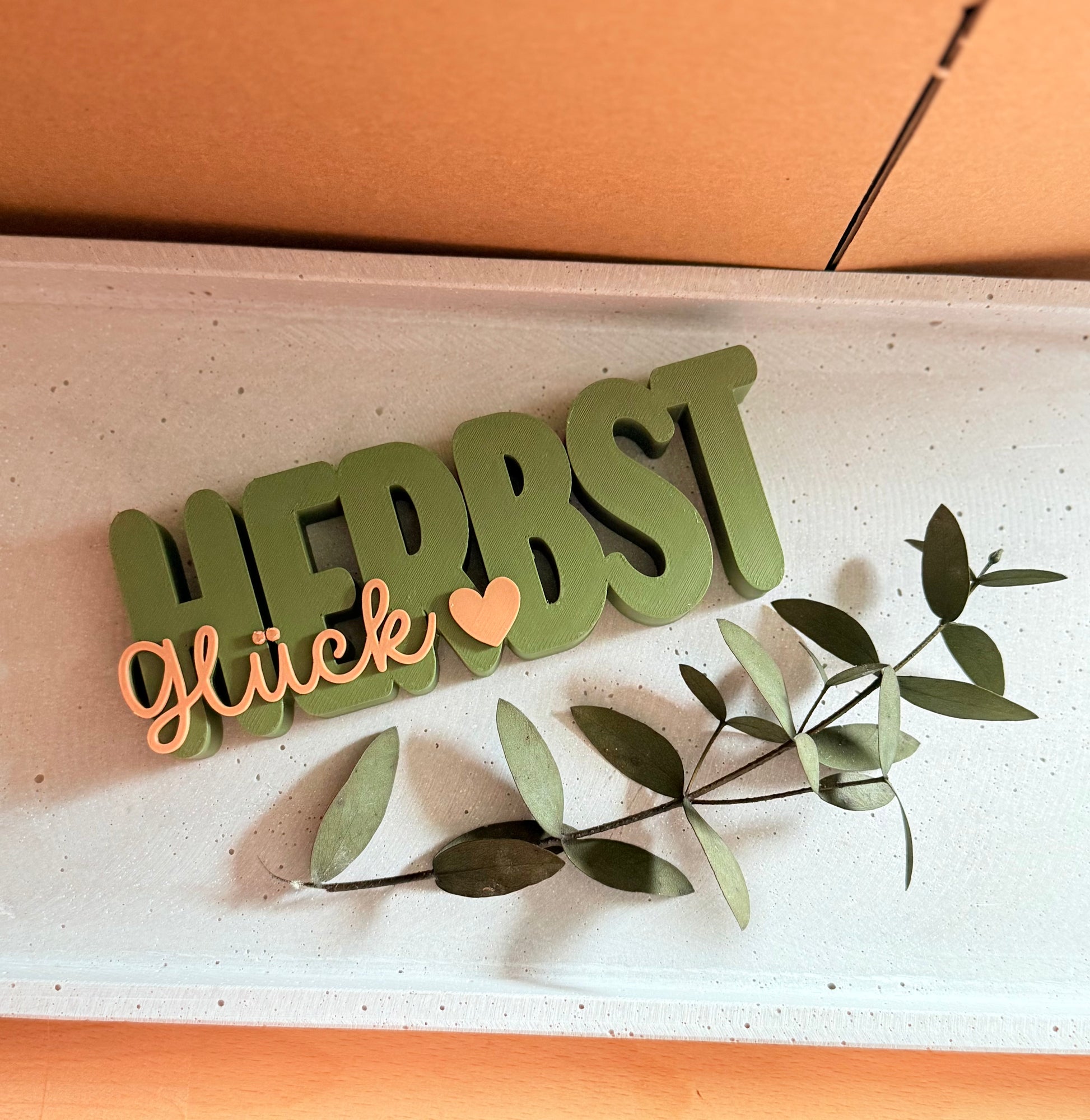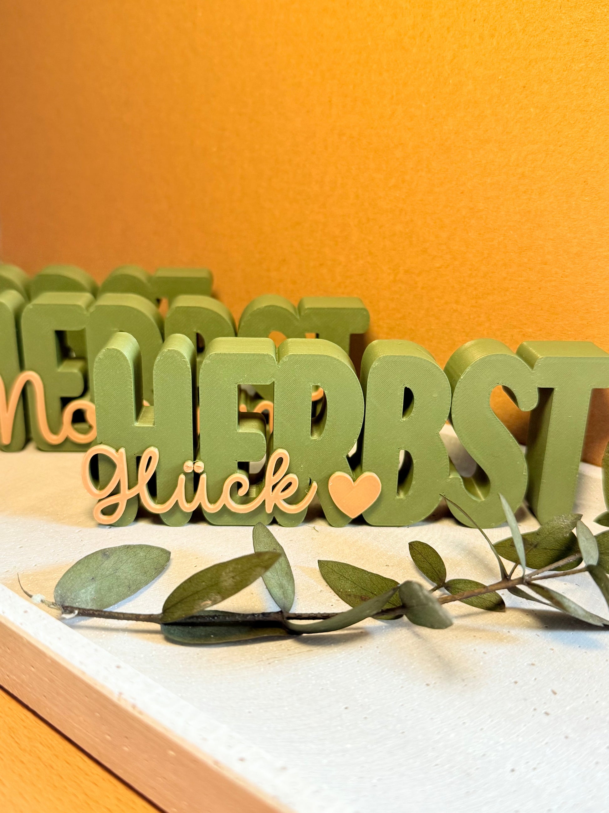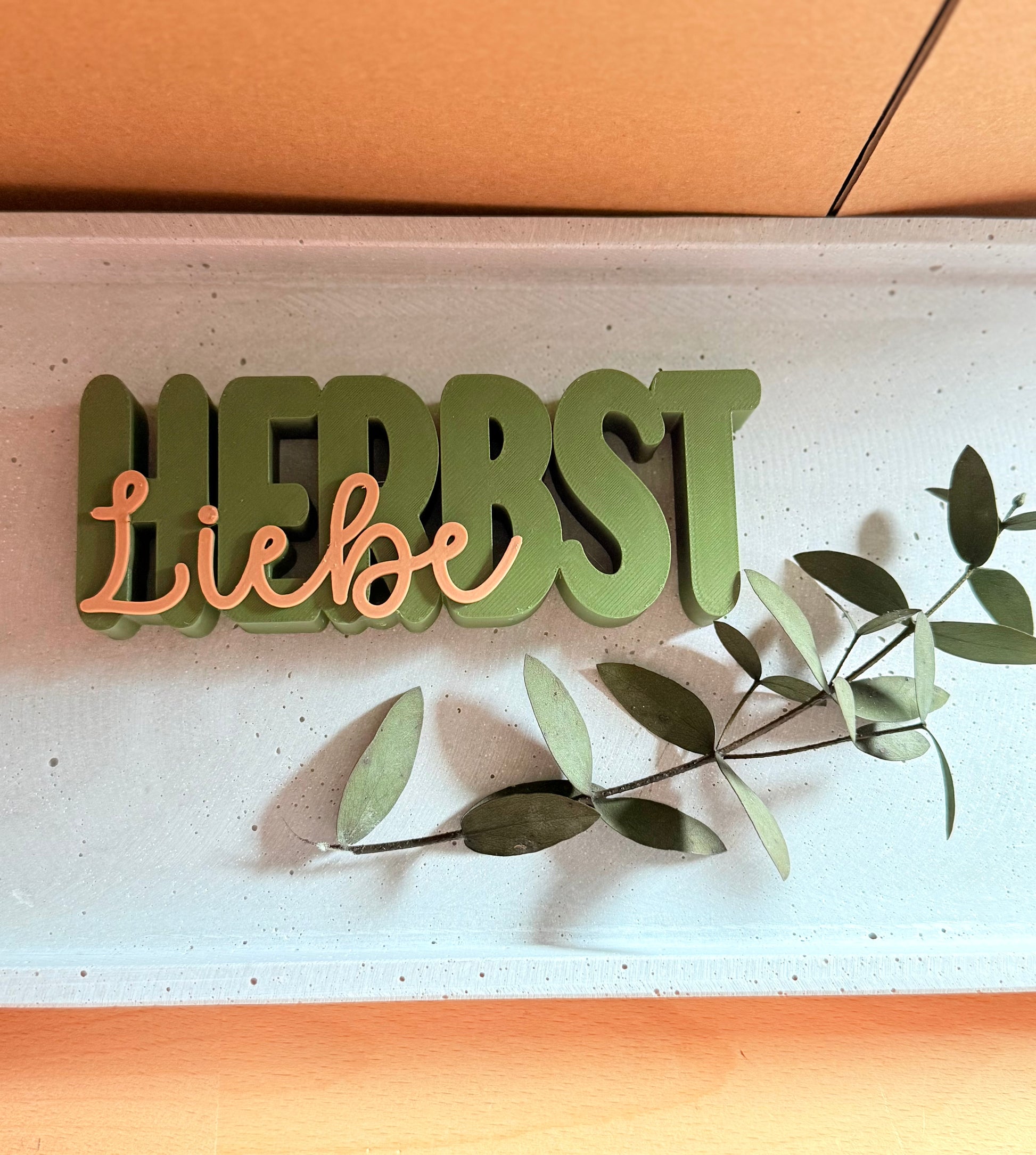 Dieses handgefertigte Schild mit dem Schriftzug „Herbstliebe“ wird von mir mit dem 3D-Drucker hergestellt und in herbstliche Farben getaucht.Perfekt zum Hinstellen auf dem Tisch, im Regal oder auf der Fensterbank.