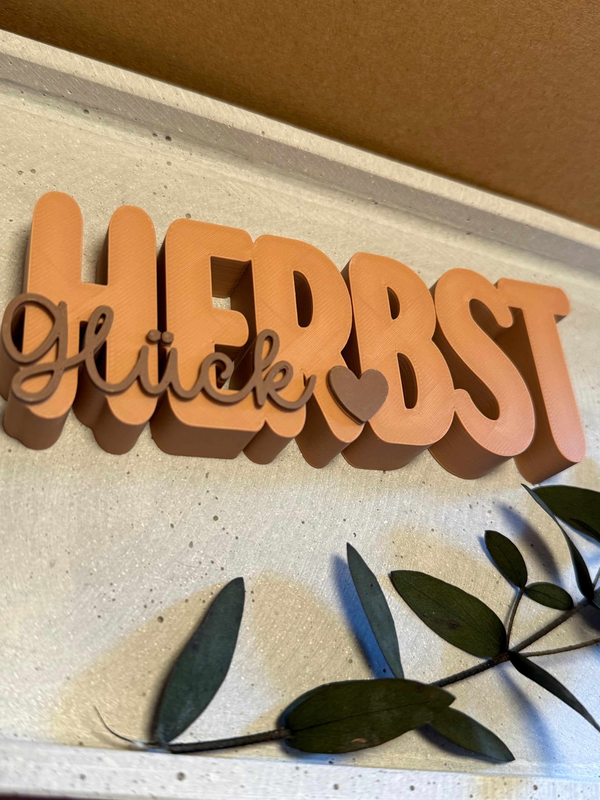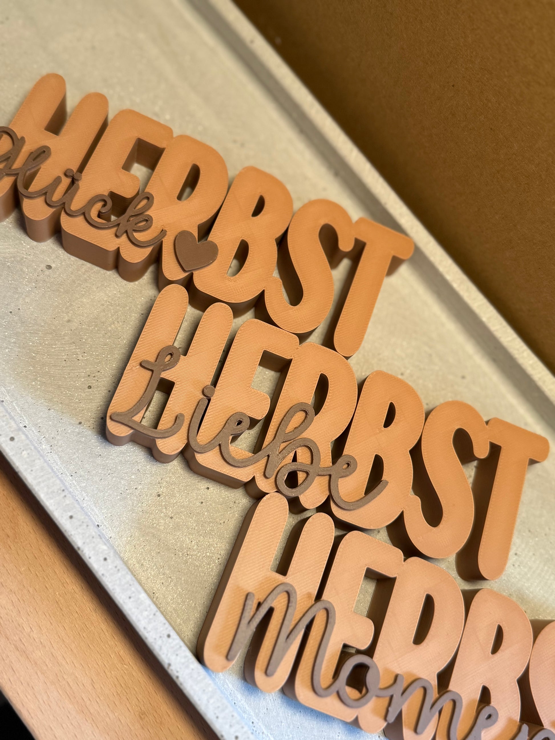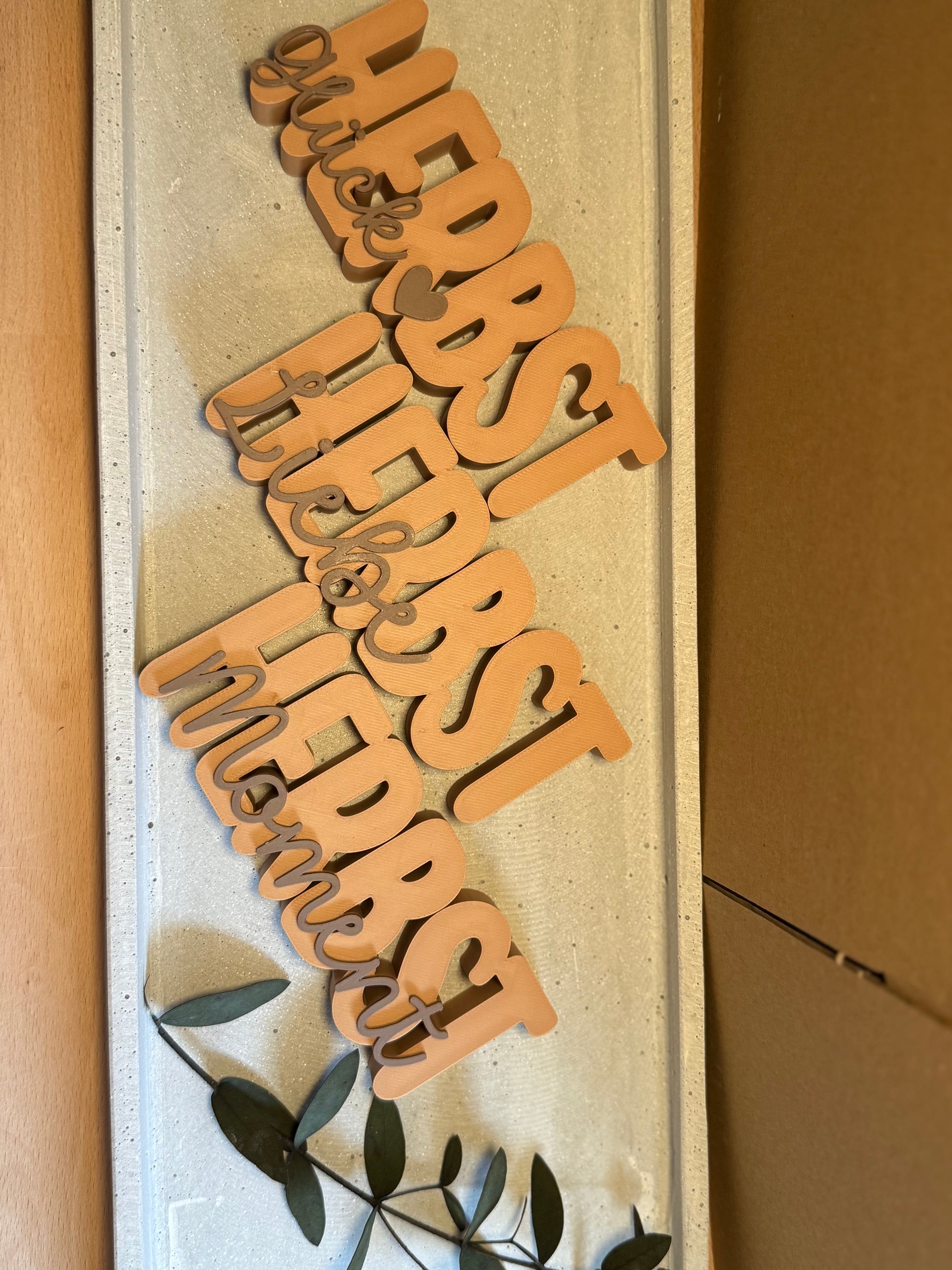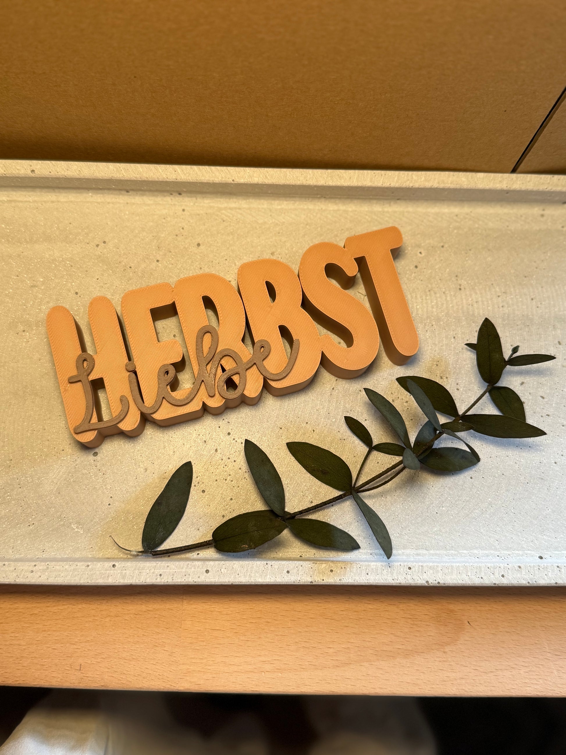Dieses handgefertigte Schild mit dem Schriftzug „Herbstliebe“ wird von mir mit dem 3D-Drucker hergestellt und in herbstliche Farben getaucht.Perfekt zum Hinstellen auf dem Tisch, im Regal oder auf der Fensterbank.