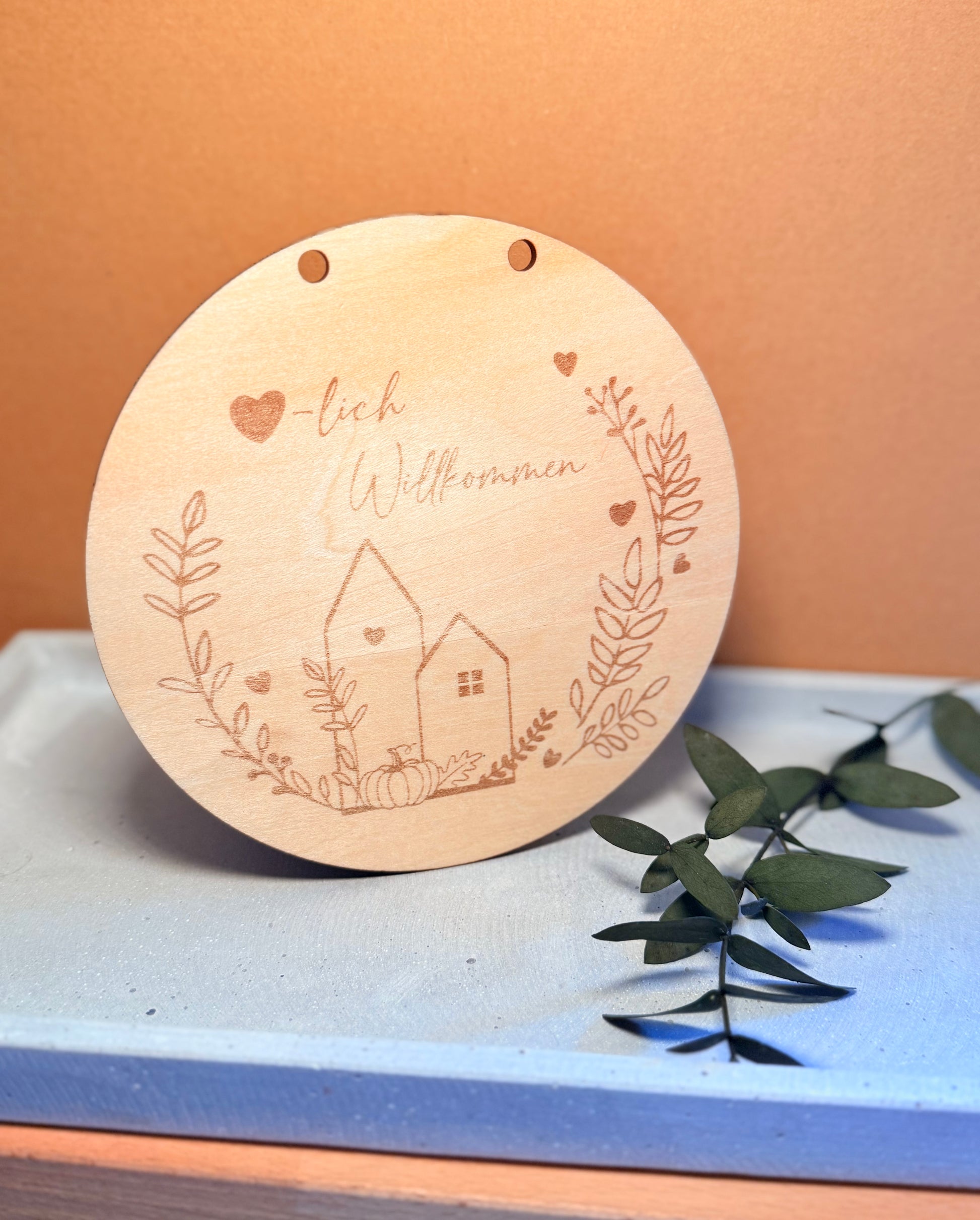 Ein liebevoll gefertigtes Holzschild mit Gravur, perfekt als Dekoration für Haustür, Briefkasten oder innen im Eingangsbereich. Mit meinem Laser graviert und geschnitten – jedes Stück ein kleines Unikat.