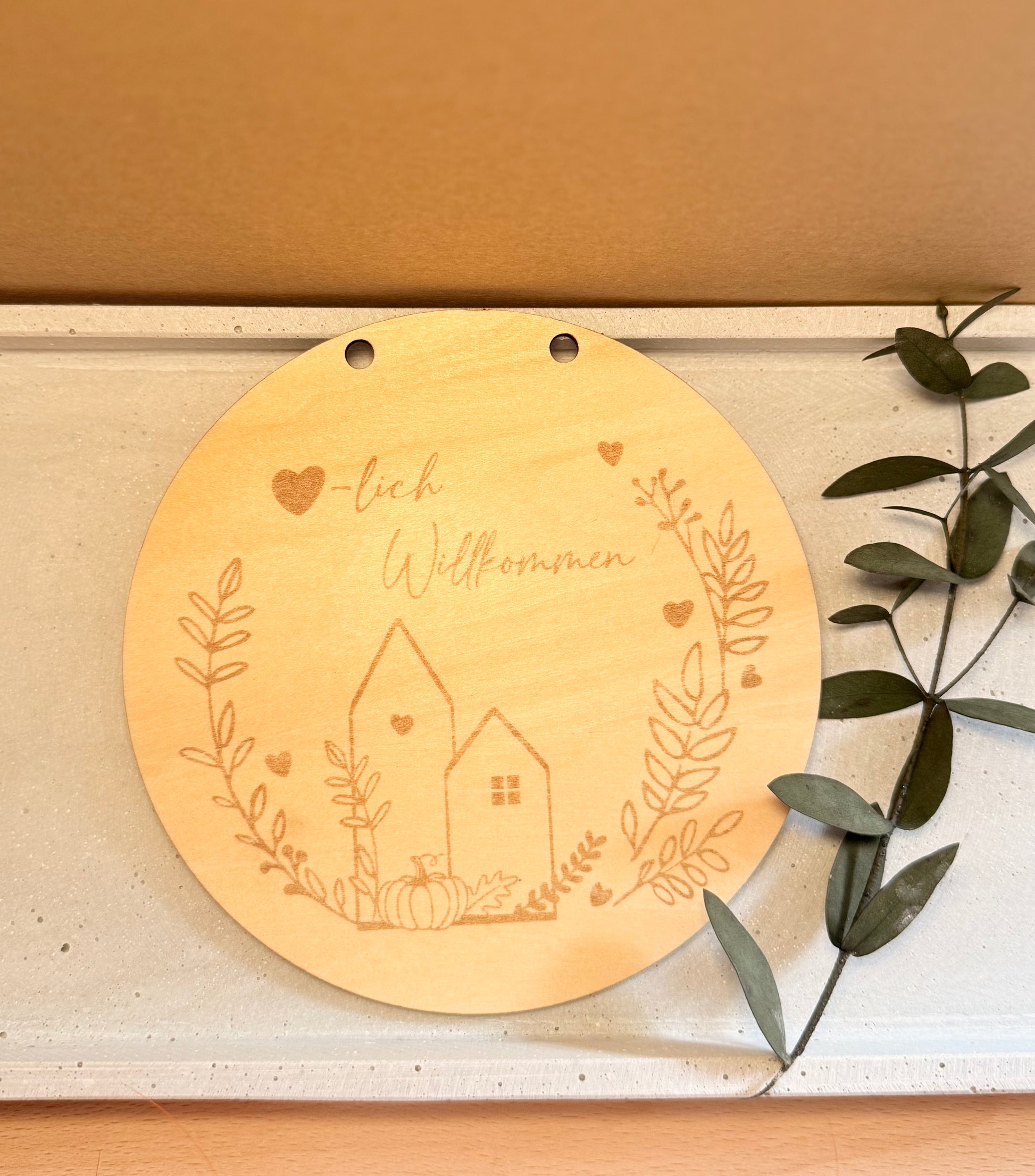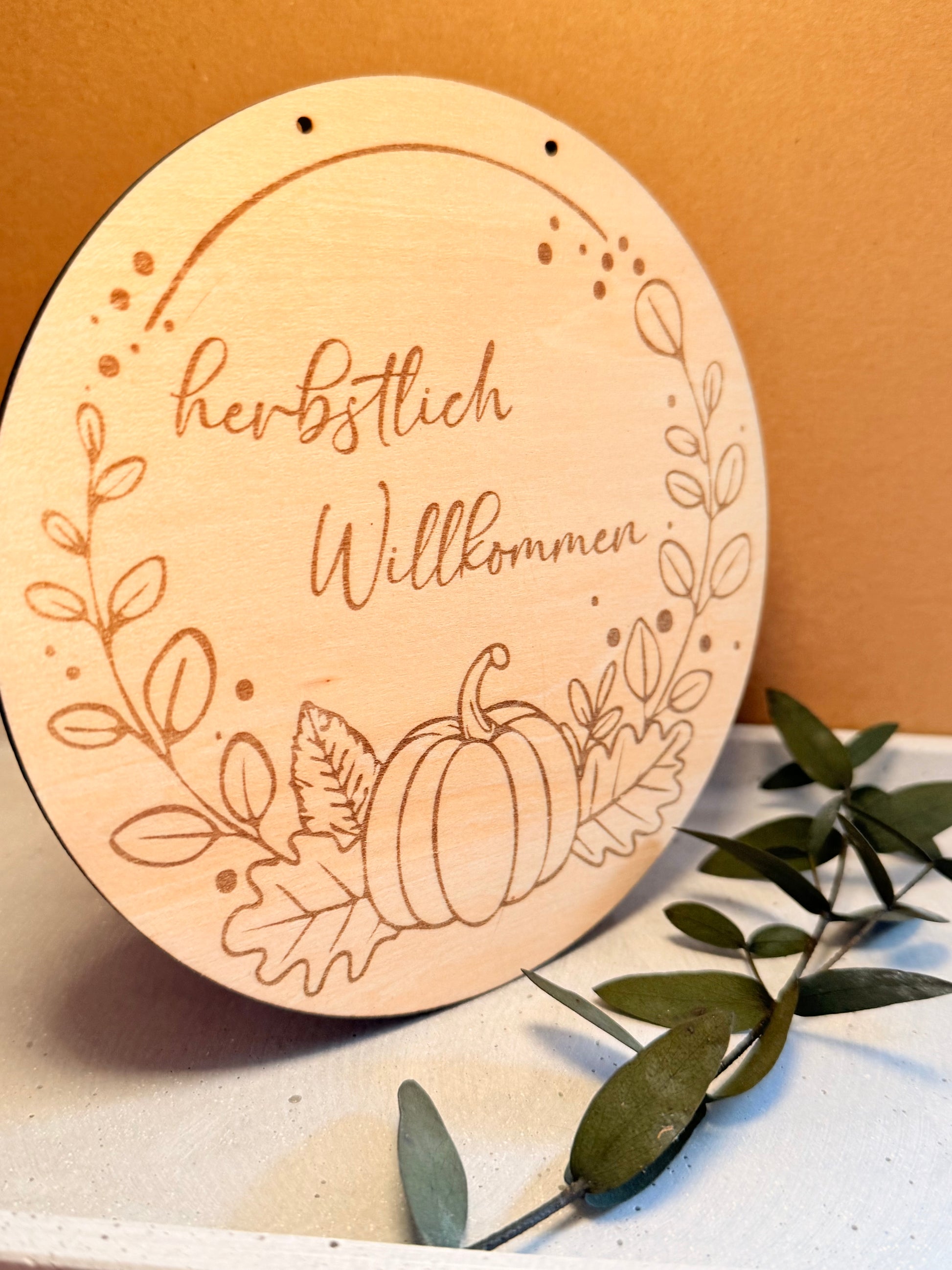 🍂 Holzschild „Herzlich Willkommen“ 🍂