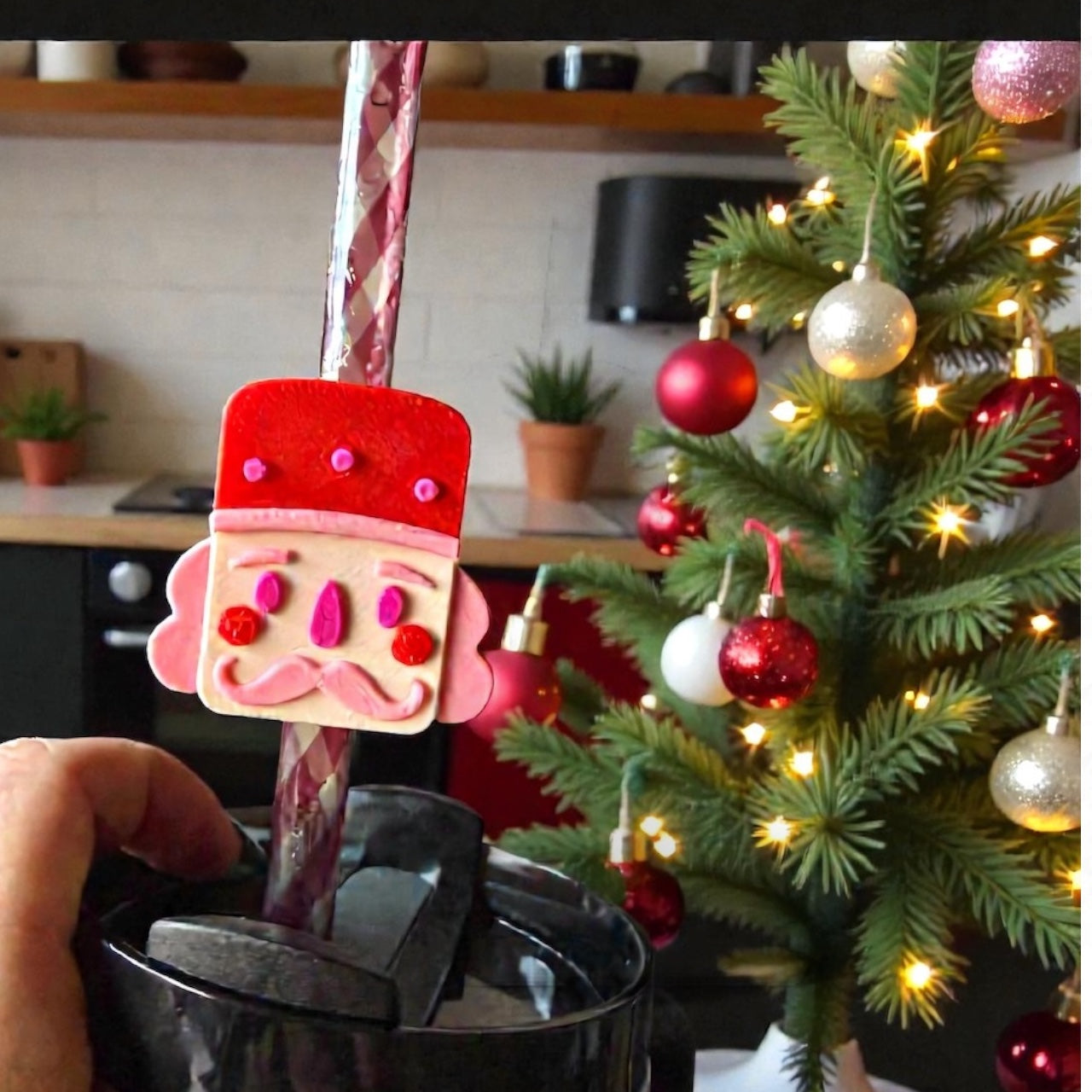 Mach’s dir gemütlich, schnapp dir deine liebste Tasse oder deinen fancy Tumbler – und steck dir diesen kleinen Weihnachts-Knallkopf auf den Strohhalm! Ob heiße Schoki, Glühwein oder dein Alltags-Motivationssaft: Mit dem Nussknacker-Kopf schmeckt’s gleich doppelt so gut.